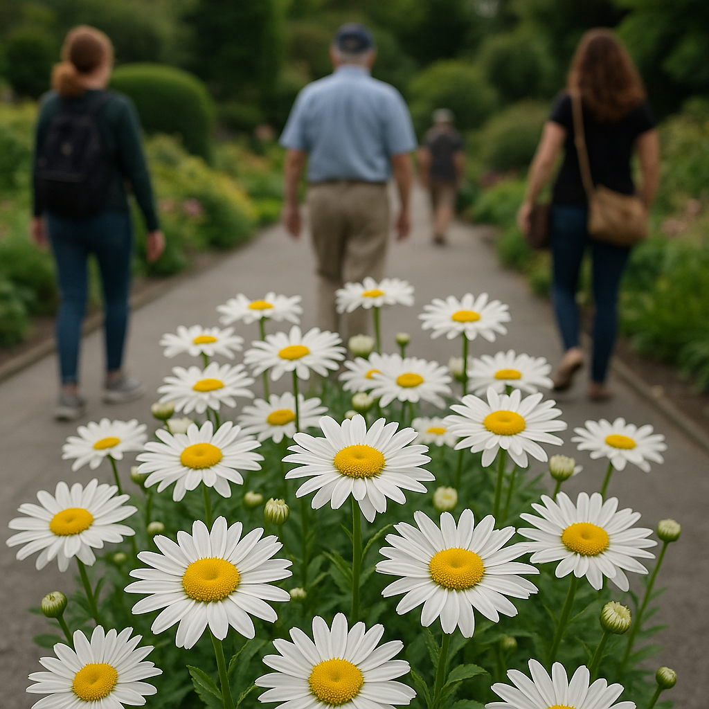 Shasta Daisy is native to the mountainous regions of western North America but has been introduced to other parts of the world, including Europe, where it is often cultivated as an ornamental plant. The plant prefers full sun to partial shade and well-drained soil. It is relatively drought-tolerant and can also tolerate heat and humidity.