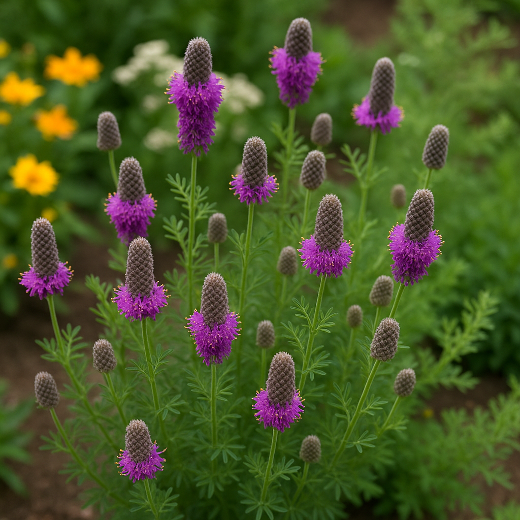 Dalea purpurea is well-adapted to prairie environments and is often found in dry or sandy soils. It thrives in full sun and is tolerant of drought conditions once established. This plant plays a crucial role in prairie ecosystems as it is a host plant for various butterfly larvae and provides nectar for pollinators.