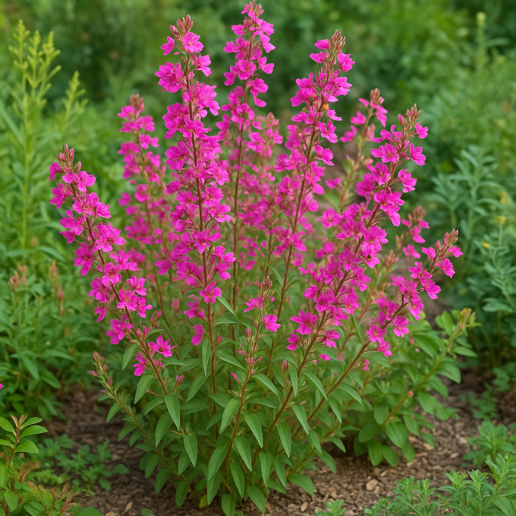 The plant typically grows to a height of 20-80 cm, with slender stems and narrow, lance-shaped leaves. The flowers are cup-shaped and have four petals that are typically pink or purple in color, although they can also be white.