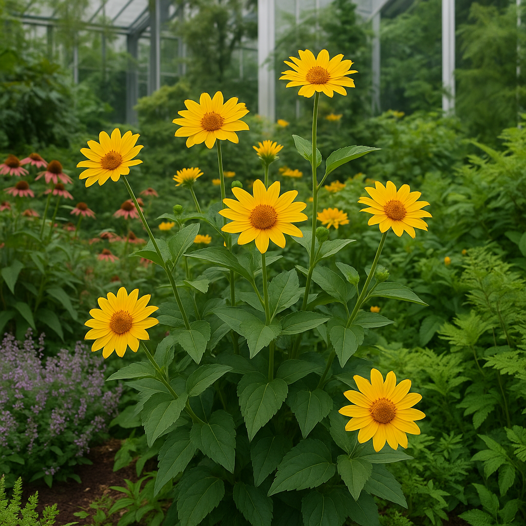 HELIOPSIS helianthoides (Ox-Eye Sunflower) is a herbaceous perennial plant that is native to North America. It is often grown as an ornamental flower in gardens and landscapes, valued for its attractive flowers and foliage.