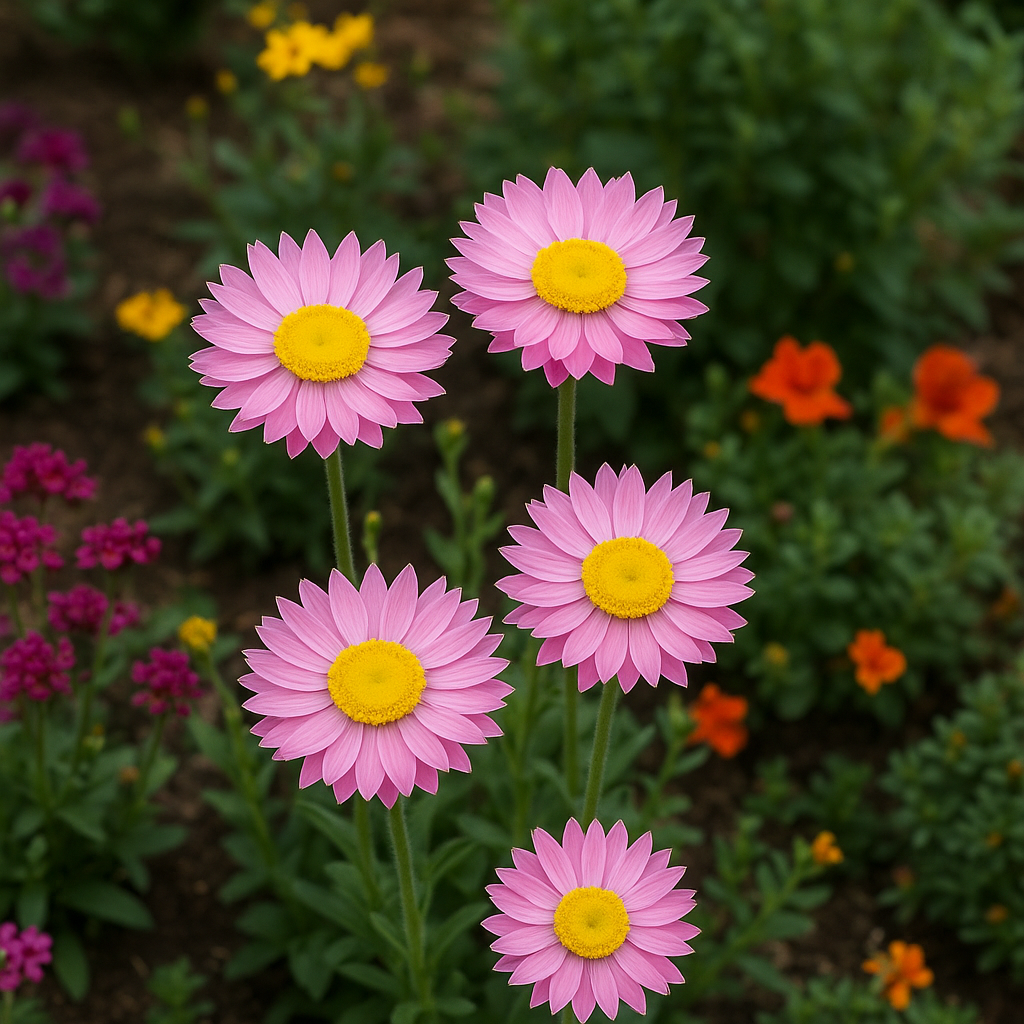 HELIPTERUM roseum (Paper Daisy) is an annual or perennial flowering plant that is native to Australia. It is a member of the Asteraceae family and is grown for its colorful, long-lasting flowers.