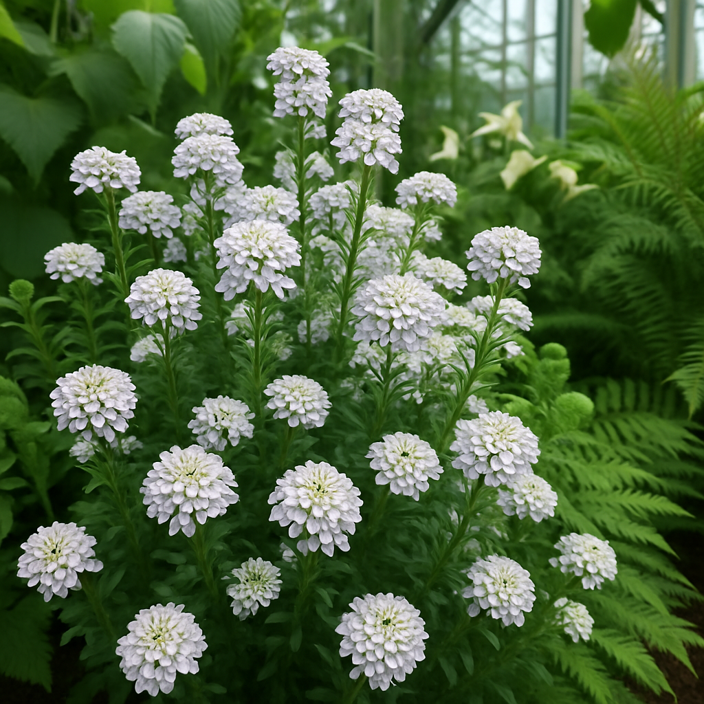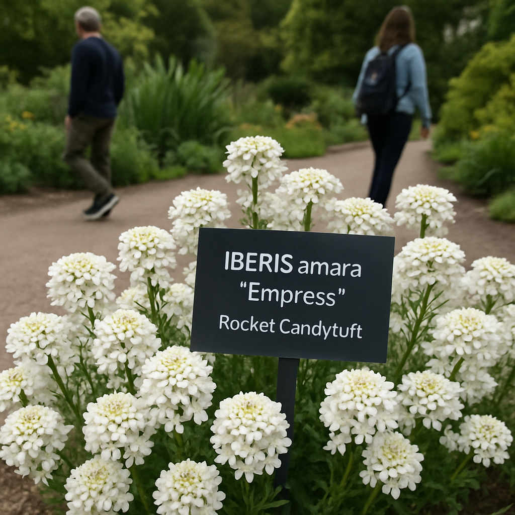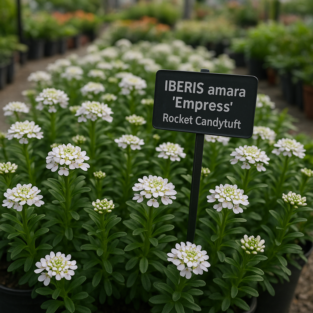 IBERIS amara 'Empress' (Rocket Candytuft) is a cultivar of Iberis amara, a flowering plant in the Brassicaceae family. Iberis amara is native to Europe and Asia. 'Empress' is a cultivated variety selected for its desirable traits. It is often grown as an annual or biennial due to its tendency to decline after flowering.