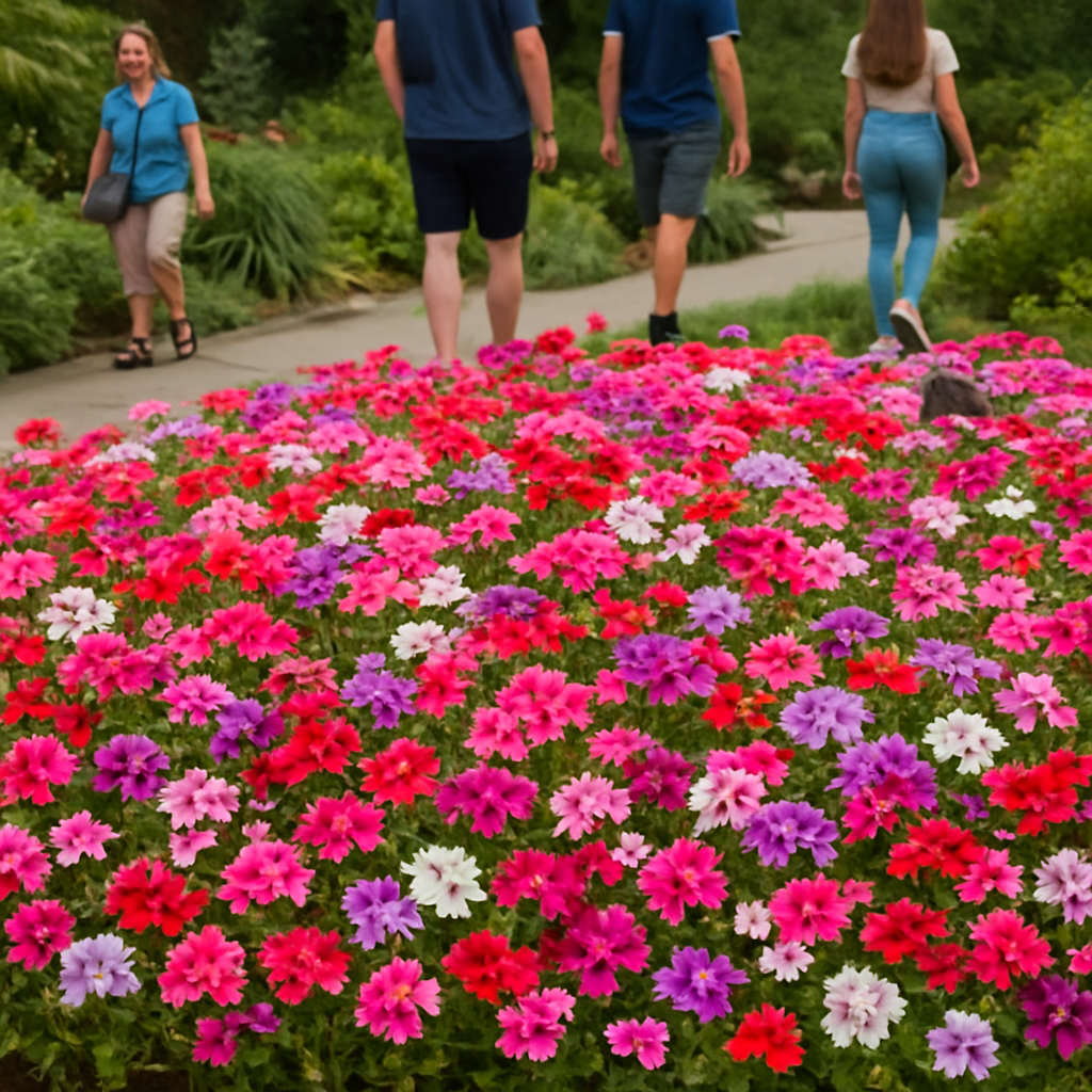 The flowers of Phlox drummondii are small and clustered in dense, flat-topped inflorescences. The Mixed variety showcases a blend of colors, which can include shades of pink, red, purple, blue, white, and bi-color combinations. The blooms are five-petaled and create a vibrant display. Annual Phlox typically blooms from late spring to early summer and continues flowering into early fall, depending on the climate and growing conditions. Regular deadheading can help promote continuous blooming.