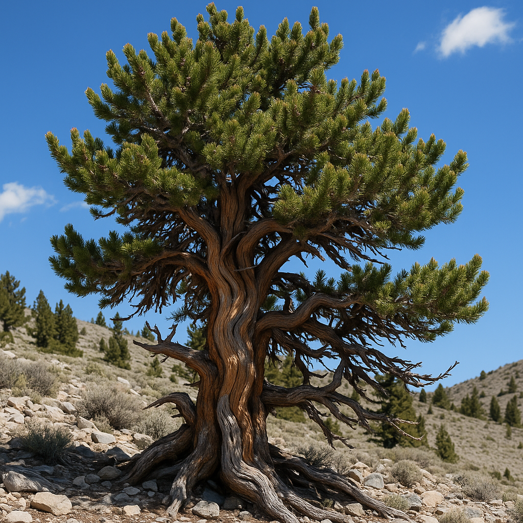 Longevity: Bristlecone Pine is one of the longest-lived tree species in the world, with some individuals reaching ages of over 4,000 years old. The slow growth rate of Bristlecone Pine, combined with its ability to withstand harsh environmental conditions, contributes to its exceptional longevity. The oldest known individual tree, named Methuselah, is estimated to be over 4,800 years old and is located in the White Mountains of California.